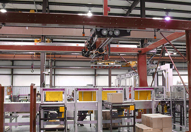 億峯提供輪胎出入庫桁架式機器人,實現(xiàn)跨度大,速度快,占地面積小,提供整套交鑰匙工程。